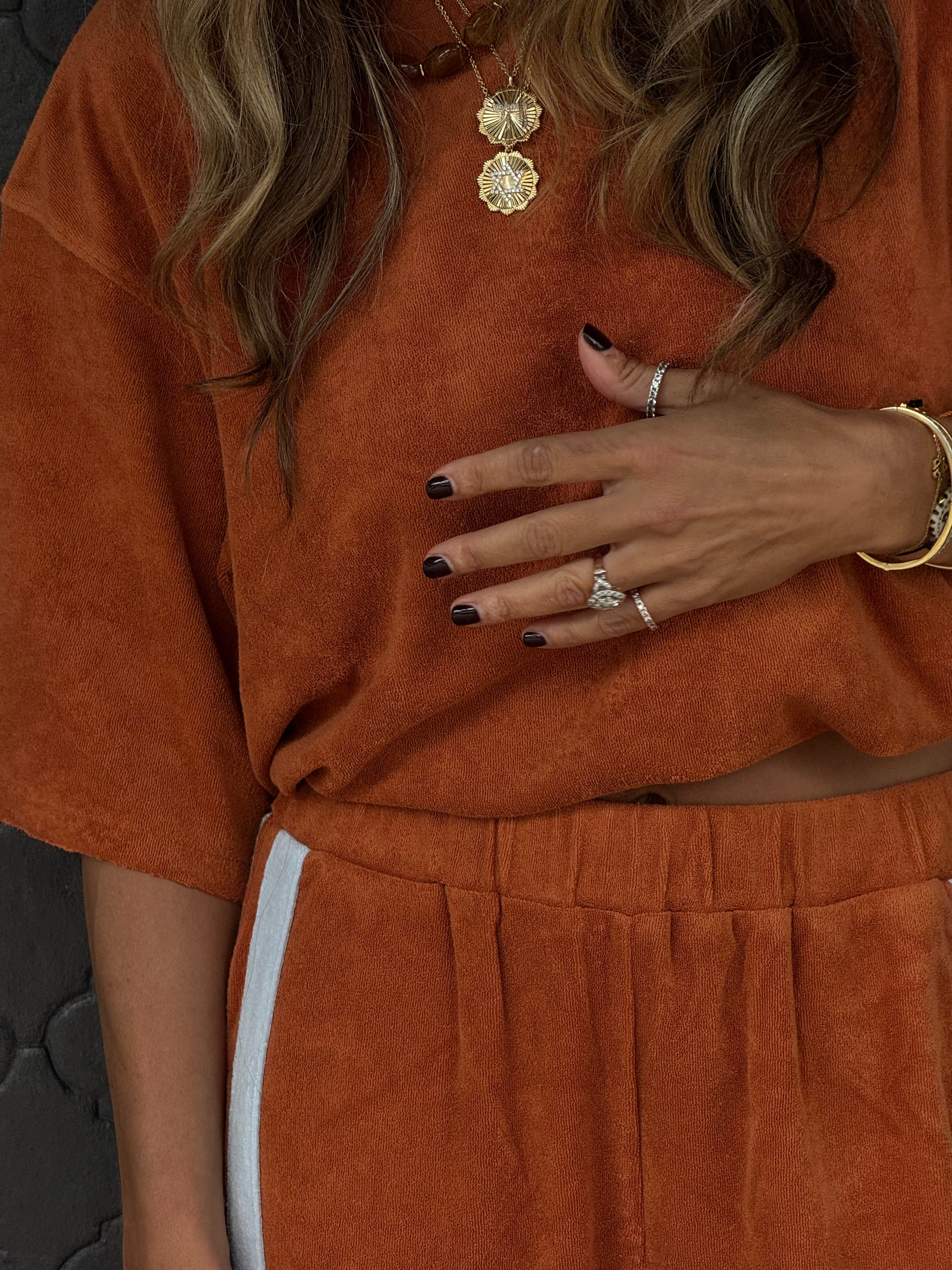 Introducing the Mason Tee in Rust Terry by Luna Lane. Featuring edgy raw hemlines and an oversized design, this tee is the perfect match for our Marley Pants. Make a bold statement and stand out from the crowd with this unique and playful piece.